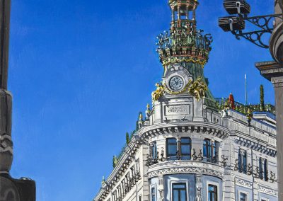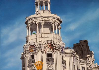 3.- De Madrid al Cielo, edificio Metrópolis. C. Alcalá. Óleo sobre tabla 27 X 22cm. Año 2012